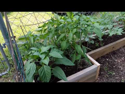 Although it’s usually recommended to not plant tomatoes and peppers right after each other in the same bed every year, they can be grown together in the same garden bed (and then rotated to another bed next season).