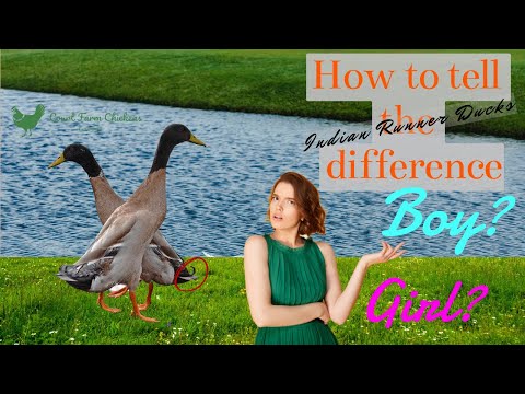 Indian runner drakes have a paler, pinker bill and usually paler feet as well. The female duck has a bright yellow or orange beak, sometimes with spots of black pigment as she grows older. By contrast, a male has a paler bill that is pinkish in color.