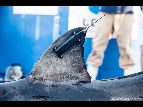 What is the OCEARCH process for tagging a shark? Animals are caught from tenders, using handlines, and are guided by hand in the water on and off the lift. The animals are then brought to the submerged platform of the M/V OCEARCH vessel and the platform is raised.